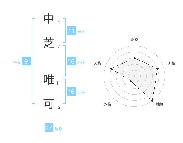 中芝 唯可さんの総格は27画の3点!