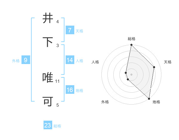 井下 唯可さんの総格は23画の5点!