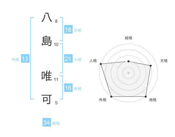 八島 唯可さんの人格は21画の5点!