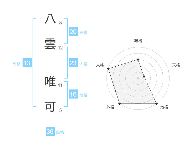 八雲 唯可さんの天格は20画の1点!