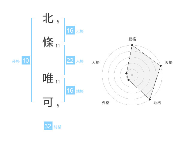 北條 唯可さんの天格は16画の5点!