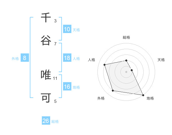 千谷 唯可さんを姓名の画数から五運を鑑定