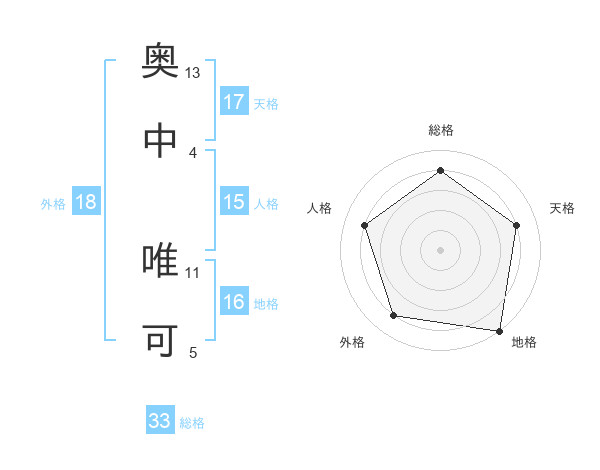 奥中 唯可さんの人格は15画の4点!