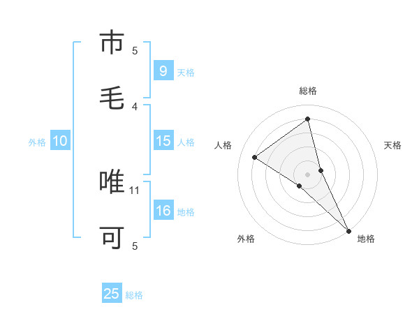 市毛 唯可さんを姓名の画数から五運を鑑定