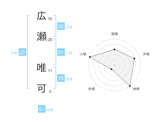 広瀬 唯可さんを姓名の画数から五運を鑑定