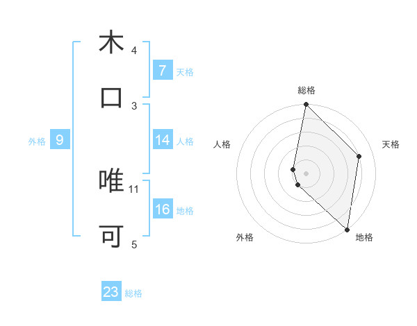 木口 唯可さんの総格は23画の5点!