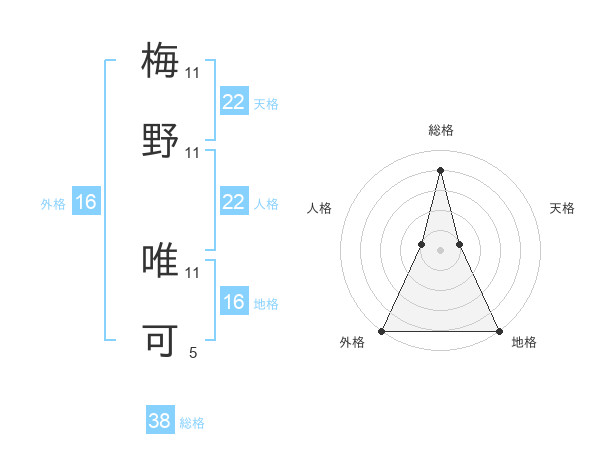 梅野 唯可さんの天格は22画の1点!