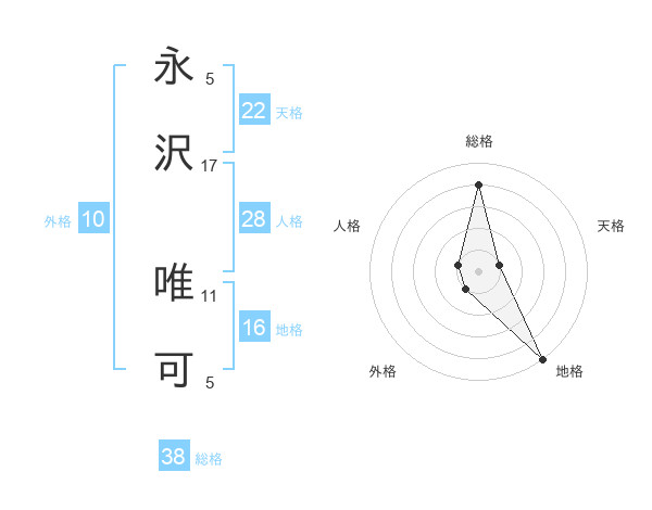 永沢 唯可さんを姓名の画数から五運を鑑定