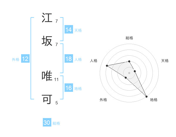 江坂 唯可さんを姓名の画数から五運を鑑定