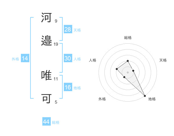 河邉 唯可さんを姓名の画数から五運を鑑定