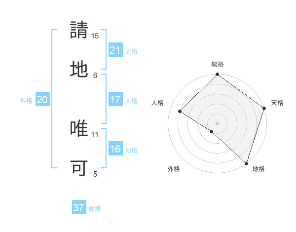 請地 唯可さんの総格は37画の5点!