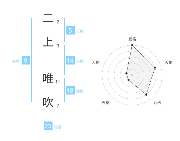 二上 唯吹さんを姓名の画数から五運を鑑定