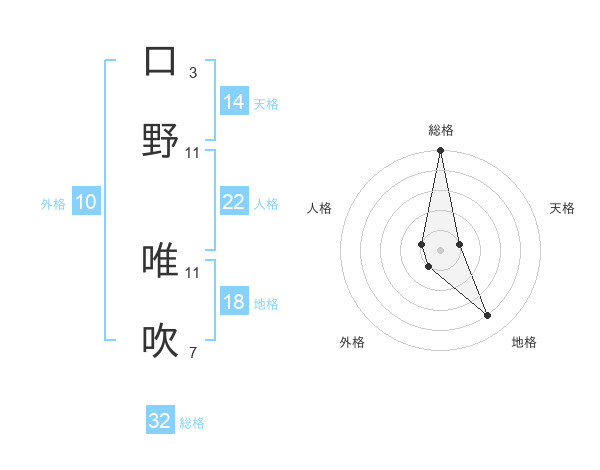 口野 唯吹さんを姓名の画数から五運を鑑定