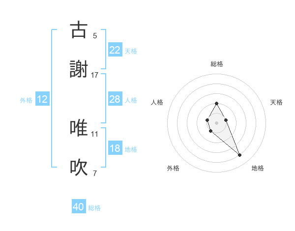 古謝 唯吹さんを姓名の画数から五運を鑑定