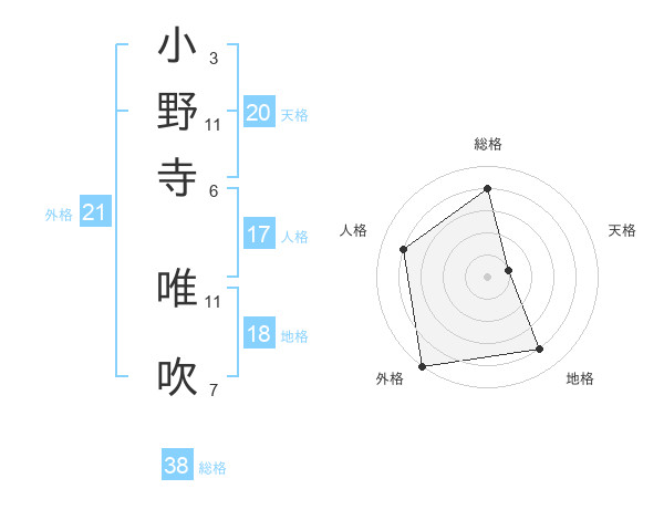 小野寺 唯吹さんを姓名の画数から五運を鑑定
