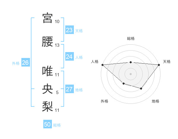 宮腰 唯央梨さんを姓名の画数から五運を鑑定
