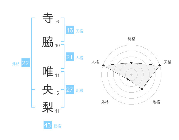 寺脇 唯央梨さんを姓名の画数から五運を鑑定