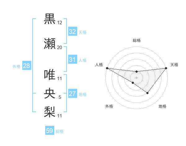 黒瀬 唯央梨さんの天格は32画の5点!