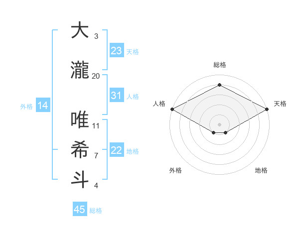 大瀧 唯希斗さんを姓名の画数から五運を鑑定