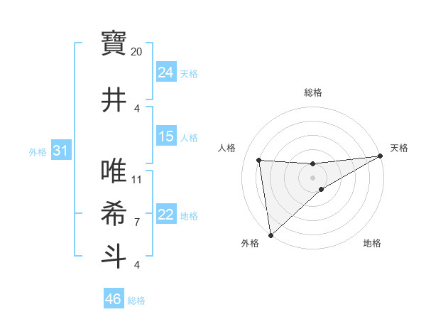 寶井 唯希斗さんを姓名の画数から五運を鑑定