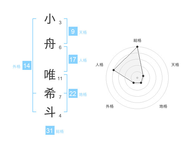 小舟 唯希斗さんの総格は31画の5点!