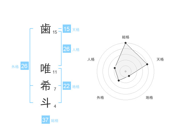歯 唯希斗さんを姓名の画数から五運を鑑定