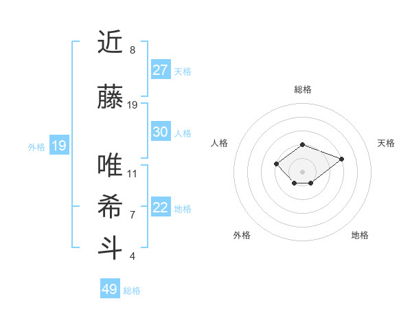 近藤 唯希斗さんを姓名の画数から五運を鑑定