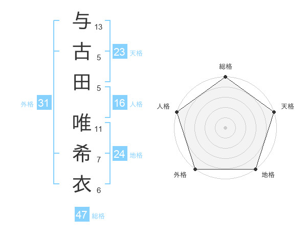 与古田 唯希衣さんの総格は47画の5点!