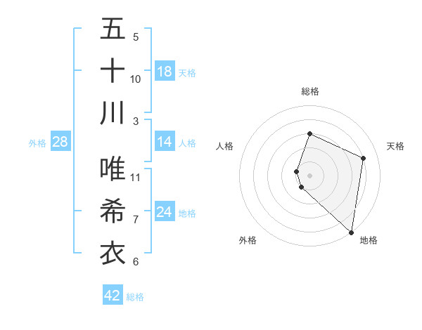 五十川 唯希衣さんの天格は18画の4点!