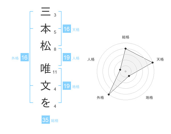 三本松 唯文をさんを姓名の画数から五運を鑑定