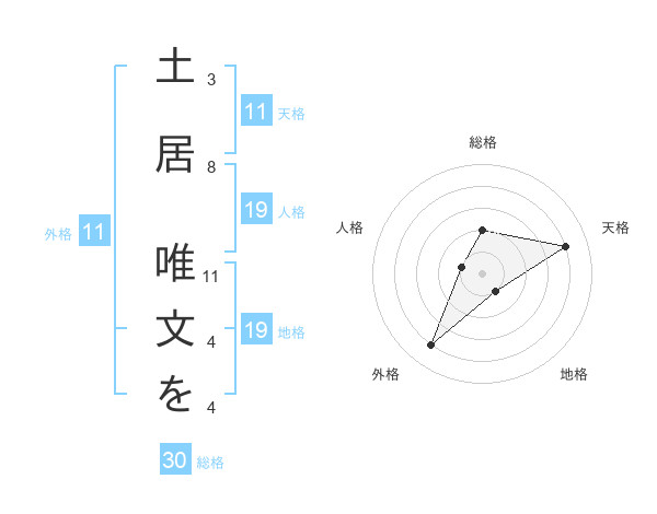 土居 唯文をさんを姓名の画数から五運を鑑定