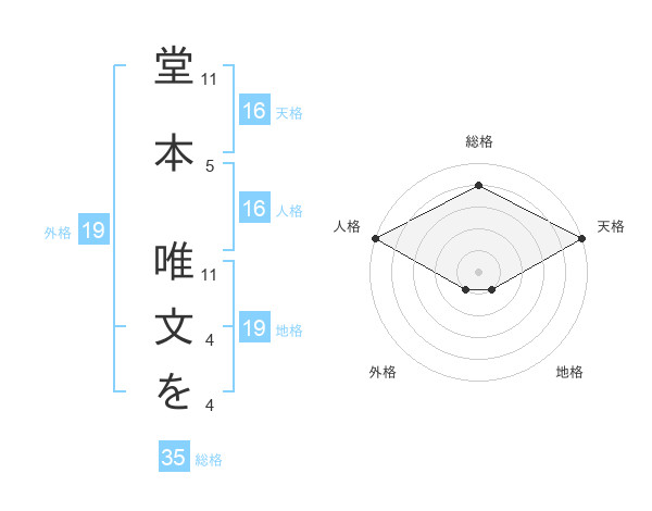 堂本 唯文をさんの天格は16画の5点!
