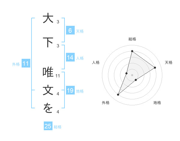 大下 唯文をさんを姓名の画数から五運を鑑定