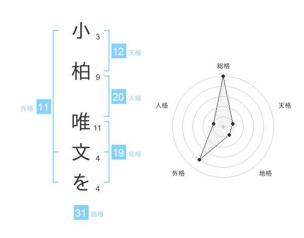 小柏 唯文をさんの総格は31画の5点!