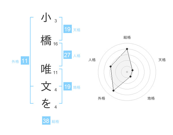 小橋 唯文をさんを姓名の画数から五運を鑑定