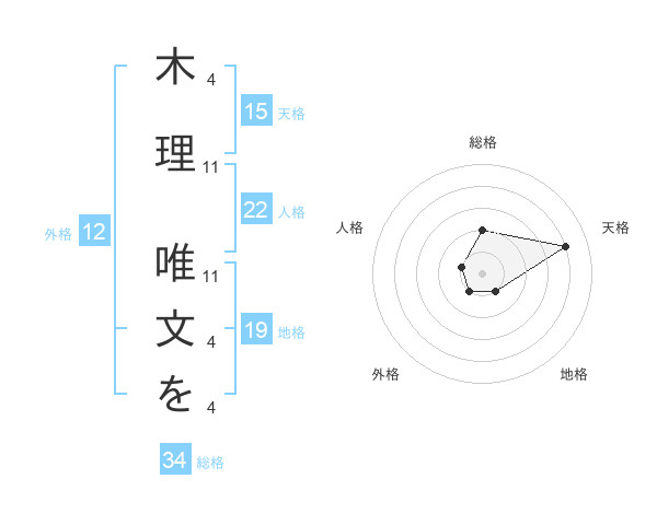 木理 唯文をさんを姓名の画数から五運を鑑定