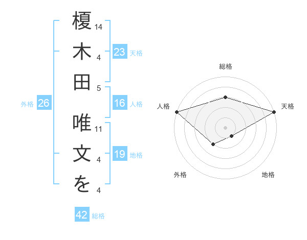 榎木田 唯文をさんを姓名の画数から五運を鑑定