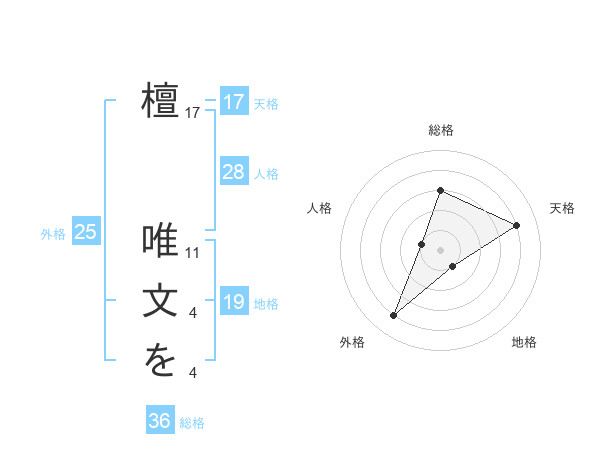 檀 唯文をさんの天格は17画の4点!