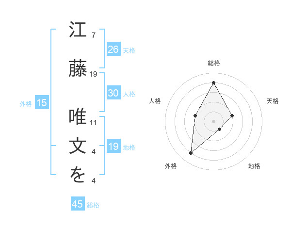 江藤 唯文をさんの外格は15画の4点!