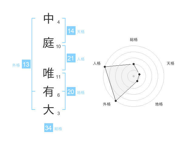 中庭 唯有大さんの人格は21画の5点!