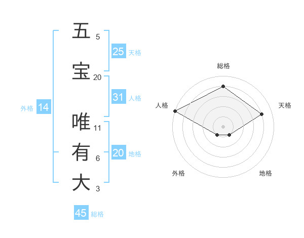 五宝 唯有大さんを姓名の画数から五運を鑑定