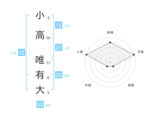 小高 唯有大さんの天格は13画の5点!