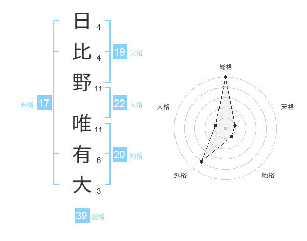 日比野 唯有大さんを姓名の画数から五運を鑑定