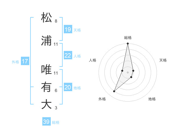 松浦 唯有大さんを姓名の画数から五運を鑑定