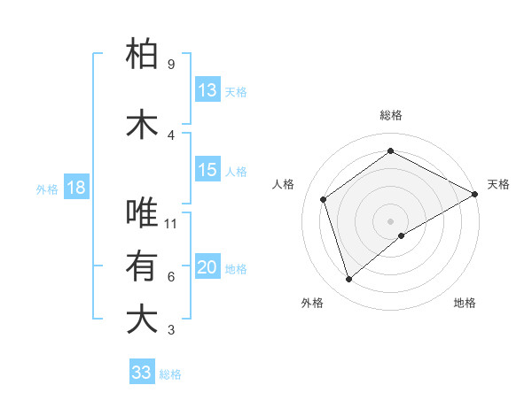 柏木 唯有大さんの天格は13画の5点!