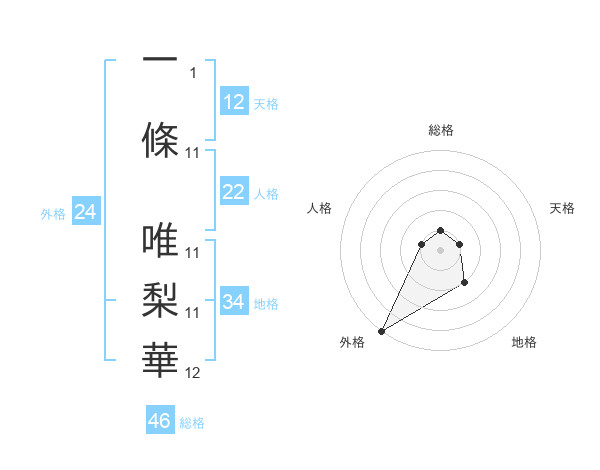 一條 唯梨華さんを姓名の画数から五運を鑑定