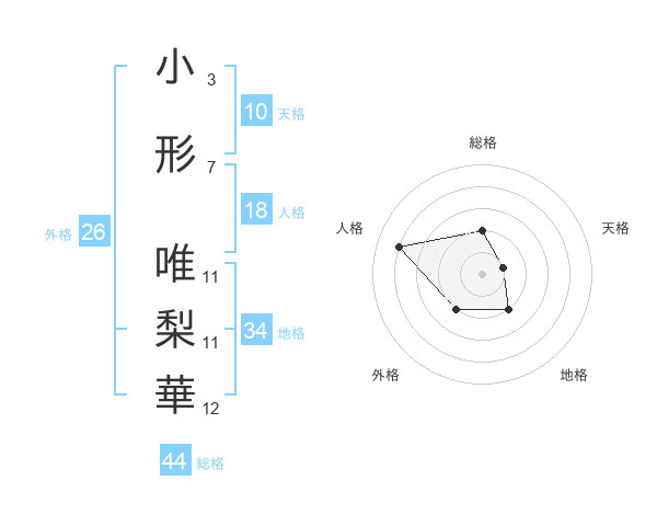 小形 唯梨華さんの地格は34画の2点!