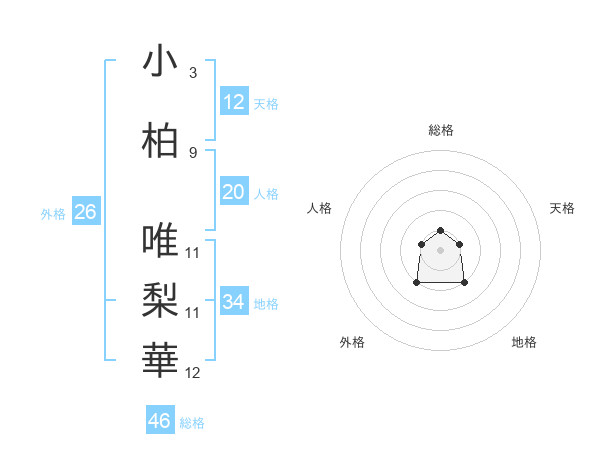 小柏 唯梨華さんの天格は12画の1点!