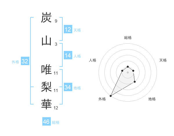 炭山 唯梨華さんの総格は46画の1点!