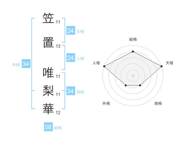 笠置 唯梨華さんを姓名の画数から五運を鑑定